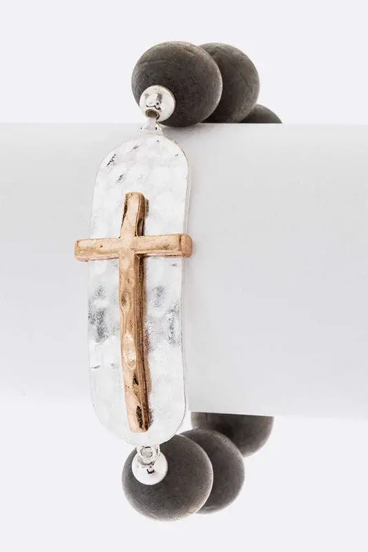 Be the first to review “2 Tone Cross Charm Stretch Bracelet”