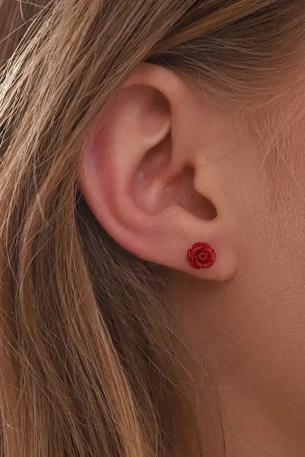 Featuring a red rose design, they offer a feminine and charming detail, making them suitable for both daily wear and special occasions.