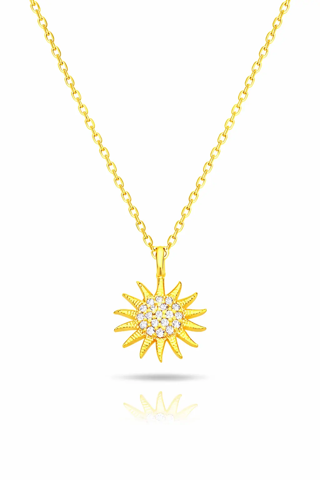 Brighten your style with this 925 Sterling Silver Sun Necklace with White Stone, a symbol of light, energy, and positivity. Crafted from genuine 925 sterling silver, this elegant necklace features a beautifully detailed sun-shaped pendant accented with a luminous white stone that adds a soft, refined sparkle.