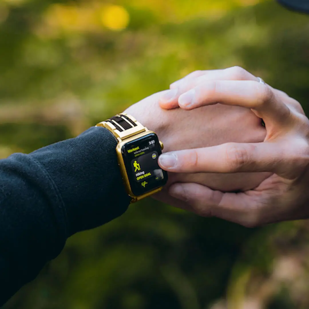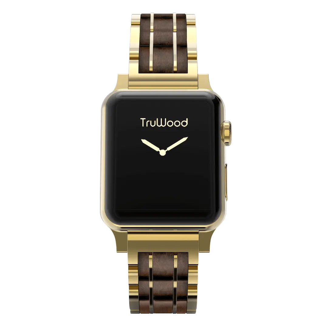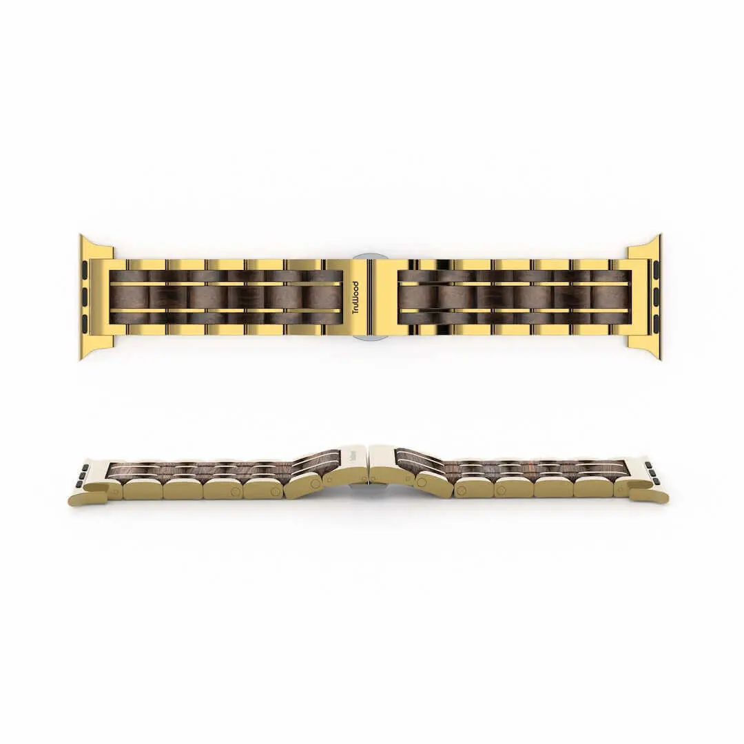 Every one of our Classic Apple Watch Bands are unique. Made with 100% natural black sandalwood and gold plated stainless steel with custom stainless steel lug end adaptors. Compatible with all series of Apple Watches (case sizes 38mm, 40mm, 41mm, 42mm, 44mm, 45mm and 49mm).