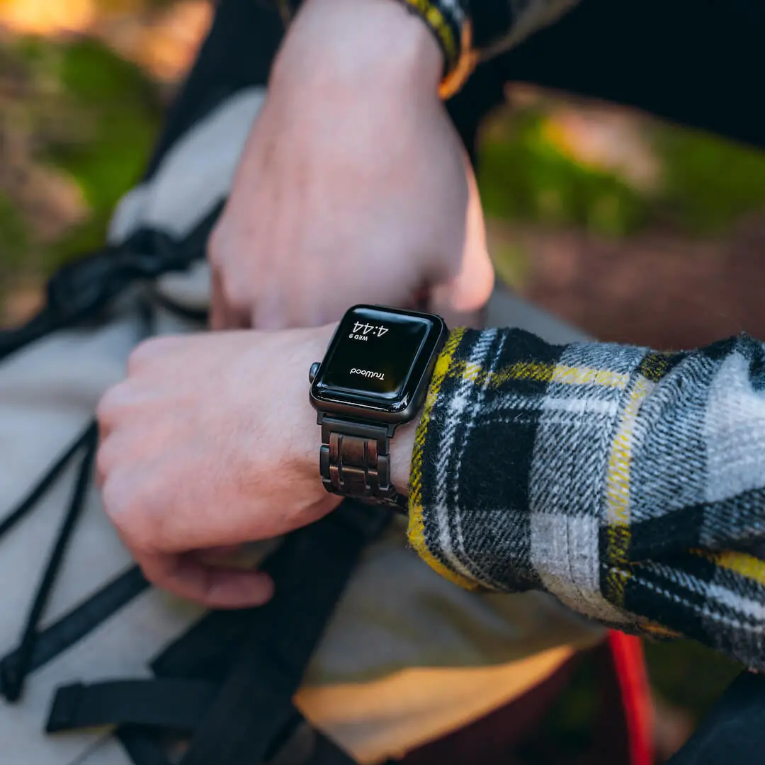 Every one of our Classic Apple Watch Bands are unique. Made with 100% natural wood and color plated stainless steel with custom stainless steel lug end adaptors. Compatible with all series of Apple Watches (case sizes 38mm, 40mm, 41mm, 42mm, 44mm, 45mm and 49mm).