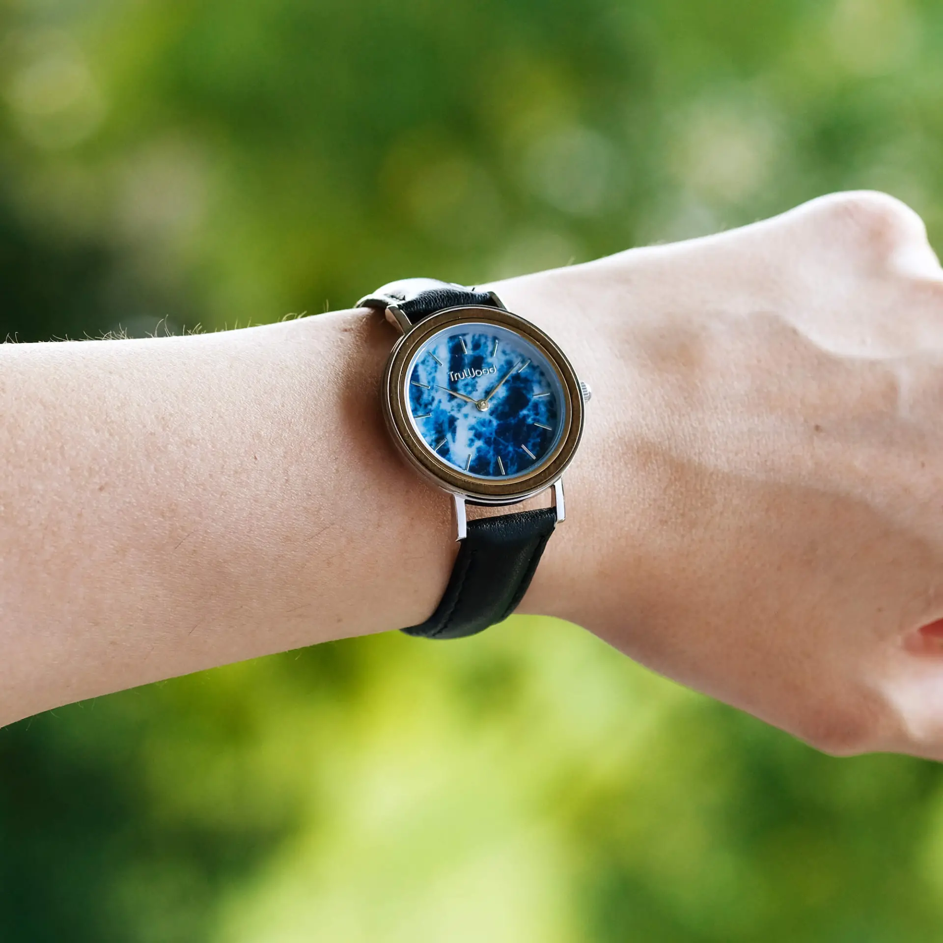 Our Marble & Wood collection is back, better than ever. Redesigned from the ground up into a staple watch for women, the Earth Women’s is more than just a timepiece. The blue marble enamel dial creates a delicate look within our signature black sandalwood bezel. Crafted in a brushed silver stainless steel case and held together by a chic and stylish leather band, the Earth Women’s captures your individuality like no other.