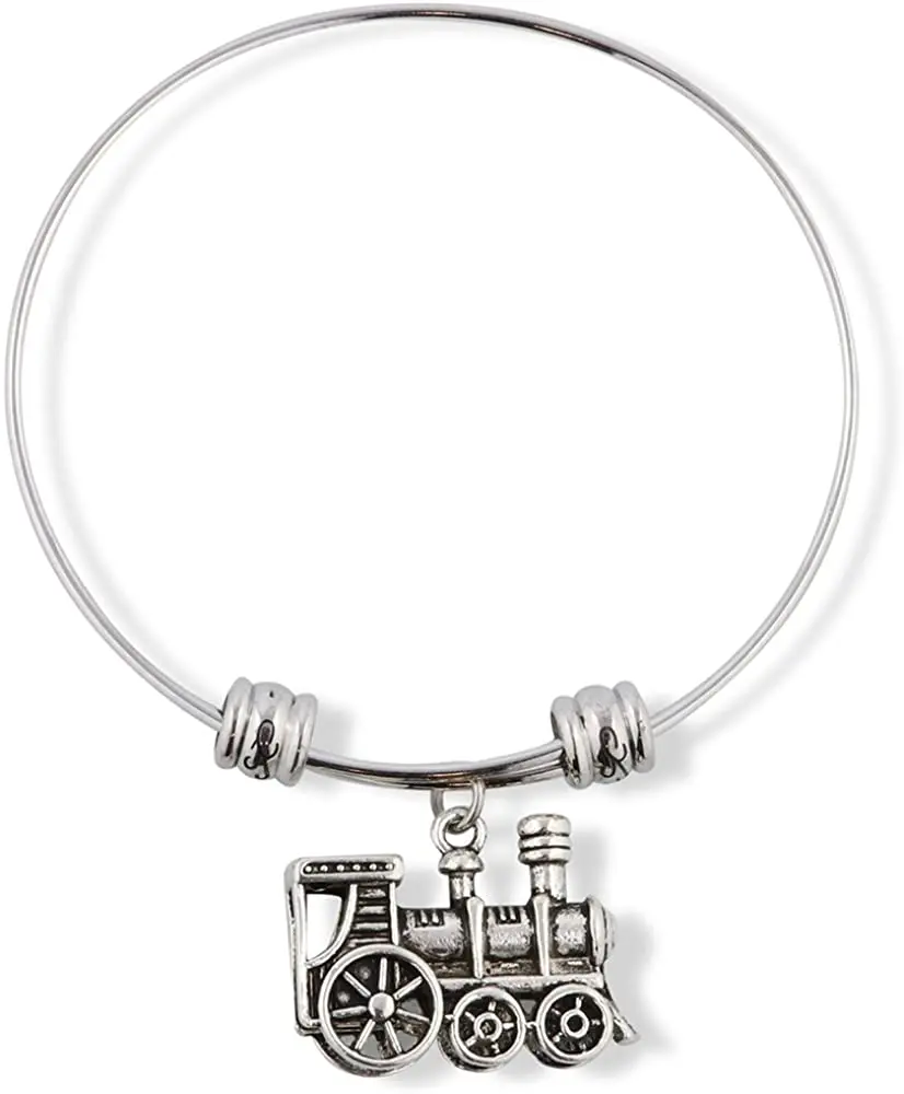 Emerald Park Jewelry Steam Engine Train Charm Bangle | Elegant Train Bracelet
