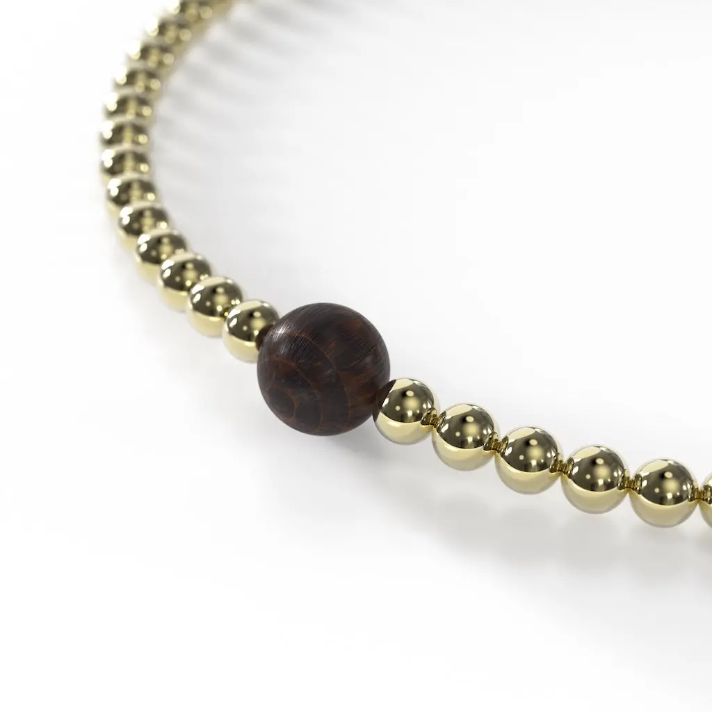 Elevate your style with the Gold / Ebony Bracelet, a stunning piece designed for the everyday woman. Made with beautiful 18K gold plated stainless steel beads and perfectly matching natural ebony wood, this bracelet is a celebration of simplicity and natural design. With its engraved TruWood dangle tag, it’s the perfect companion to your favorite watch, completing your look with elegance and charm.