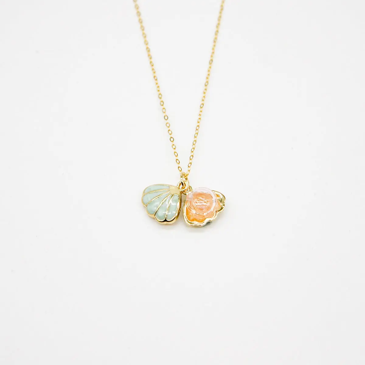 Elevate your style with our stunning new Green Shell Aroma Choker Necklace with light pink pearl, a harmonious blend of exquisite design and timeless aroma. Crafted with care, the pendant and chain gleam in 925 stirling silver coated in 18k gold plating, while the Murano Glass pearl (6 dream colours) are meticulously hand-blown, each tucked in the gilded green shell.
