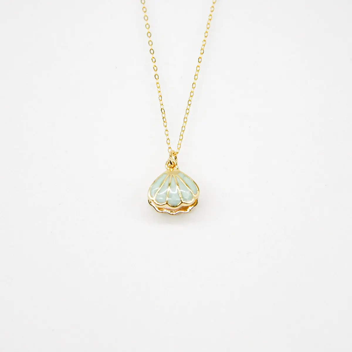 - 18k gold plated 925 silver chain and gilded green shell pendant