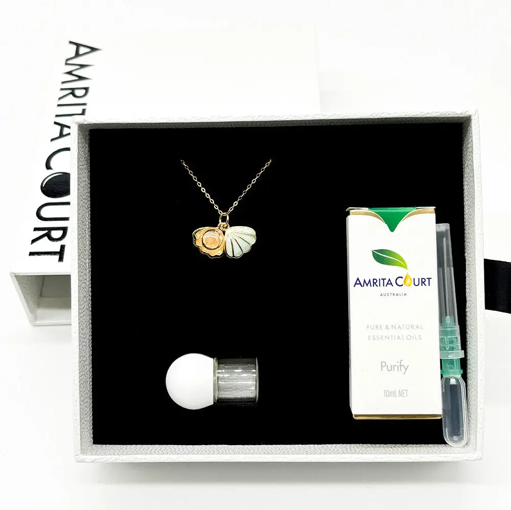 Serving as both a statement piece and a practical accessory, the delicate pearl doubles as a container for a drop of essential oil, allowing you to diffuse your favorite scent effortlessly on the go. Embodying beauty, versatility, and functionality, this necklace is a timeless addition to any ensemble, ensuring you feel happy, calm, content, and confident on all occasions.