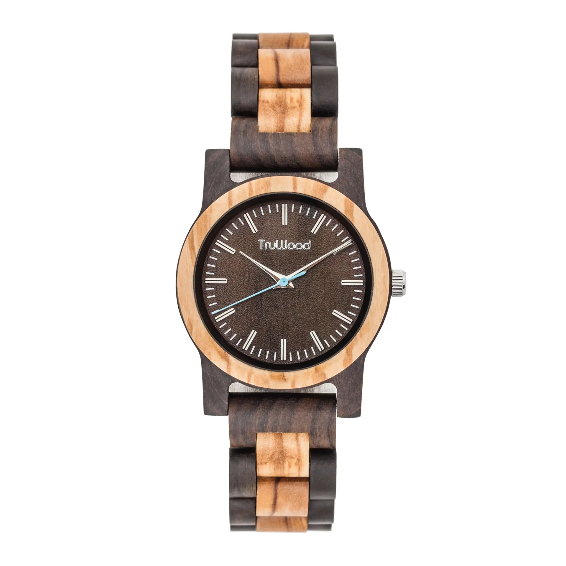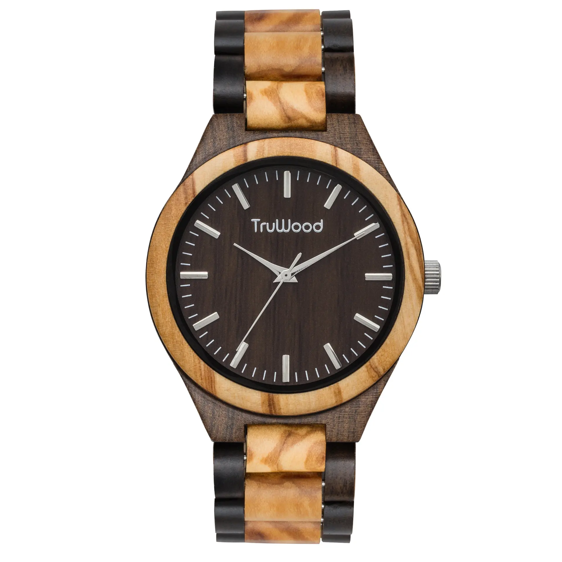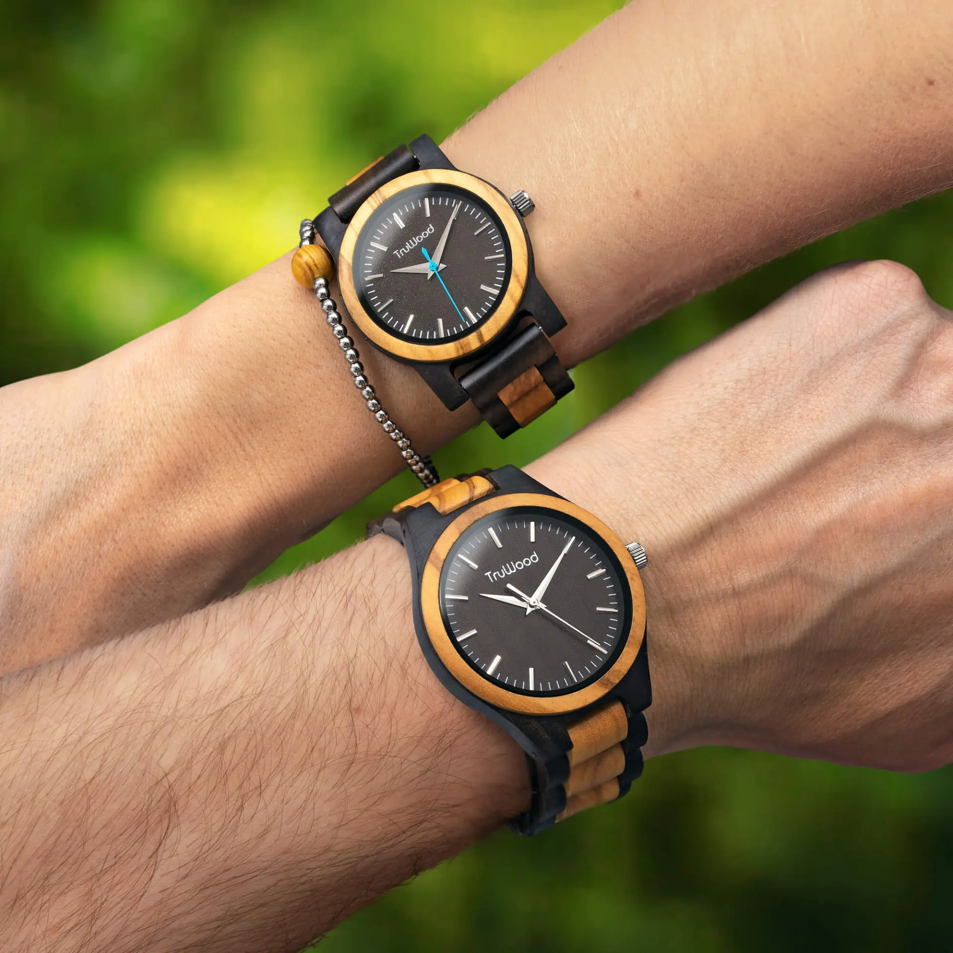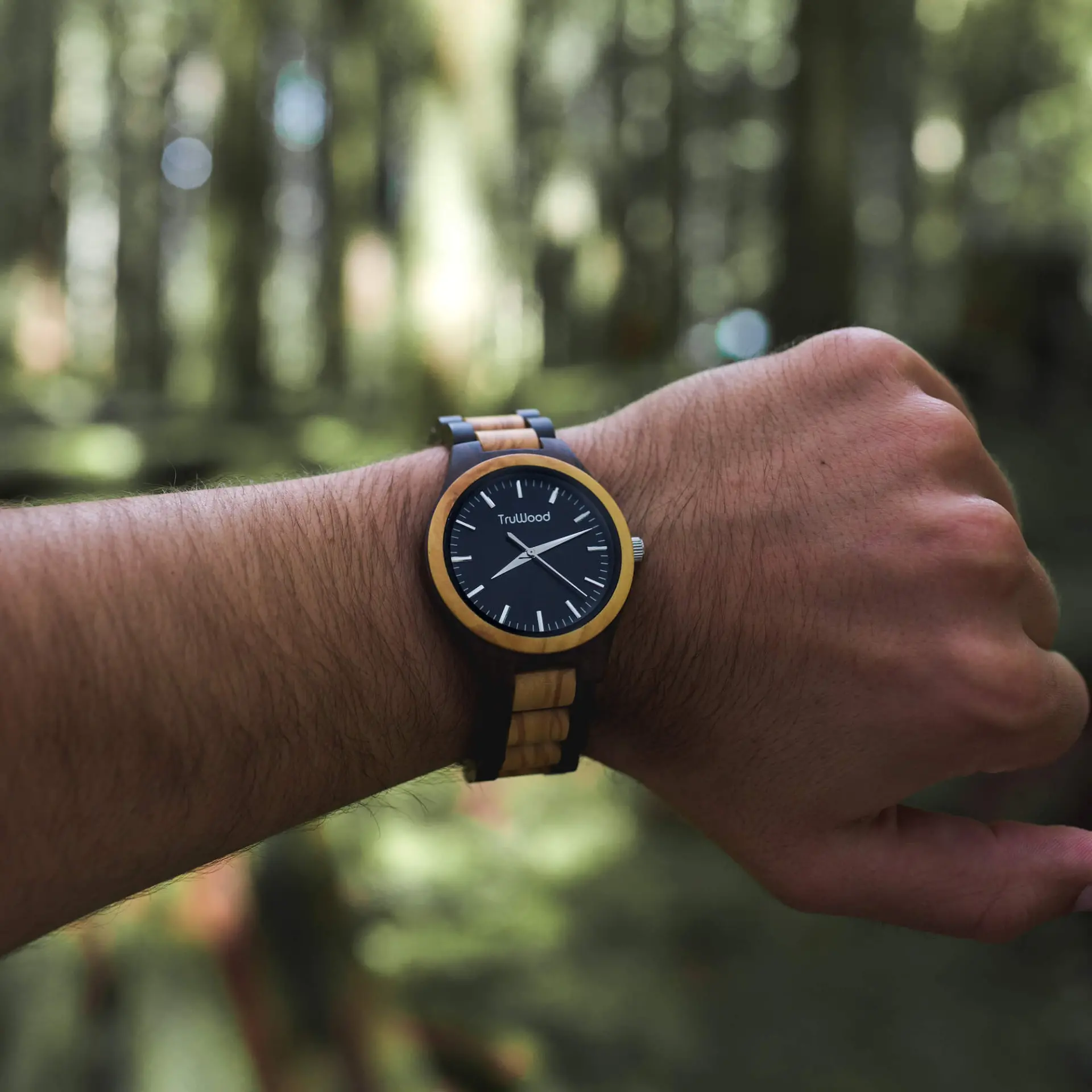 Guaranteed to stand out from the pack is the TruWood Hybrid. Two tone wood grains complement each other with brown olive wood and black sandalwood all around the entire wood link band. Elegant dual colour design on a minimal brown dial housed by a sapphire coated mineral glass is built to last and sure to catch the eyes of passersby at the slightest glimpse. Be bold. Be daring. A unique timepiece with the option to engrave your own customized message on the back made for everyday use – you will not find anything else quite like it.