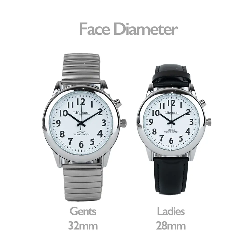 Featuring a beautifully clear dial with high vision fonts approved by the RNIB, so you can easily see the time at a glance. The time and date is announced in a clear, British voice recorded by the RNIB. A donation is made to the RNIB for each watch sold.