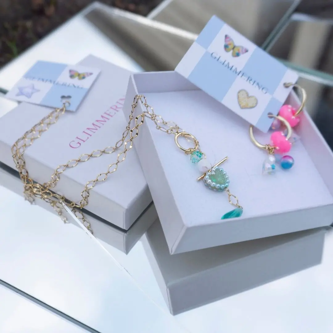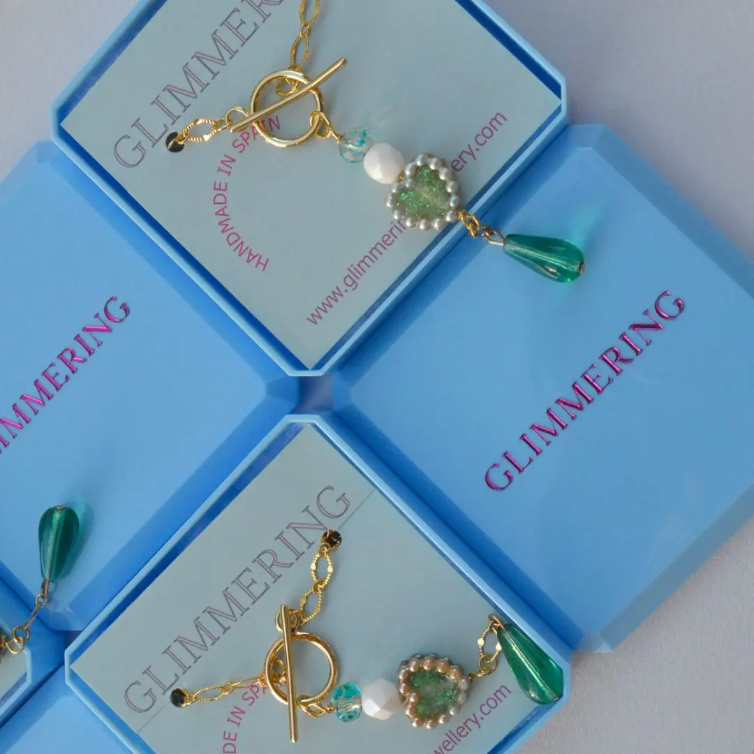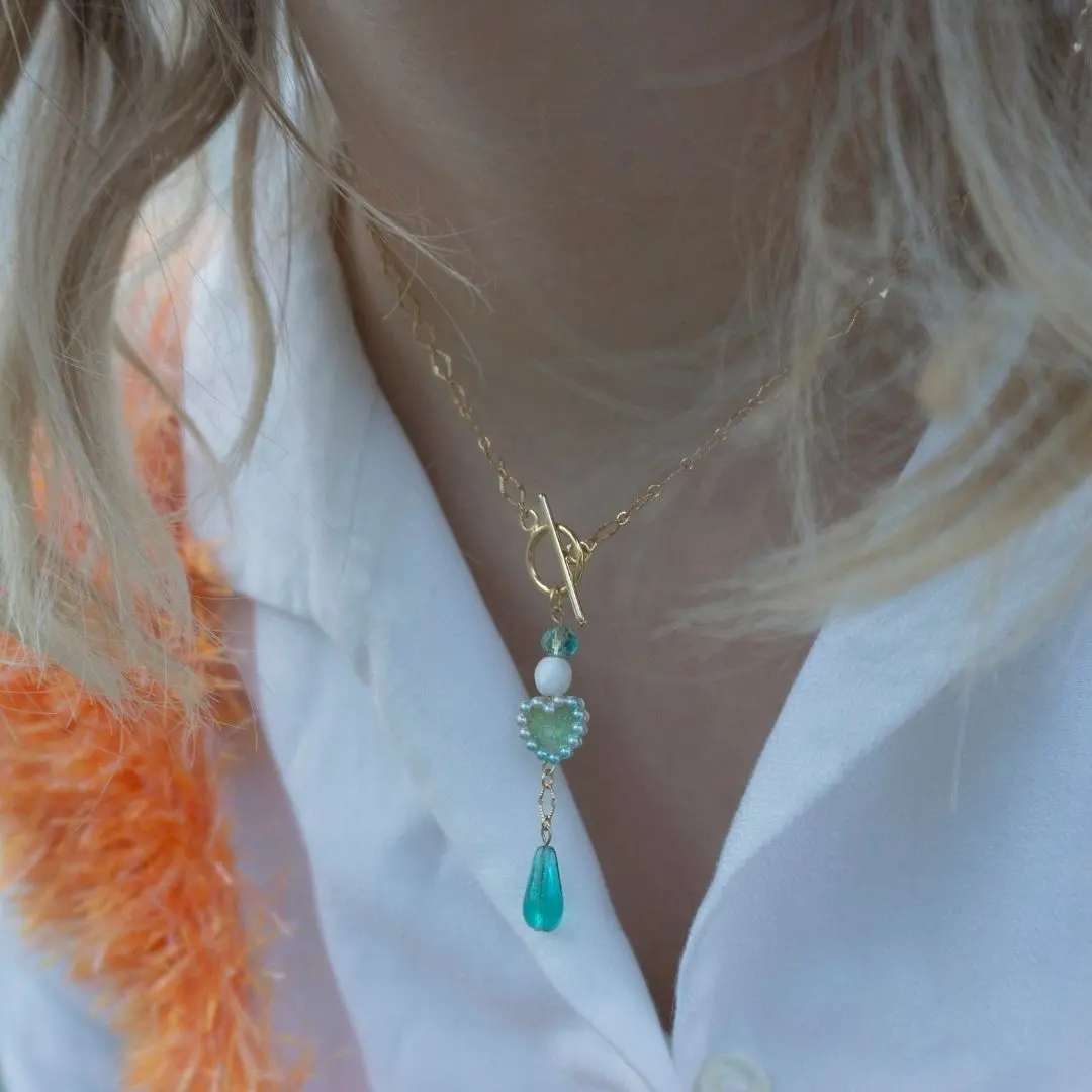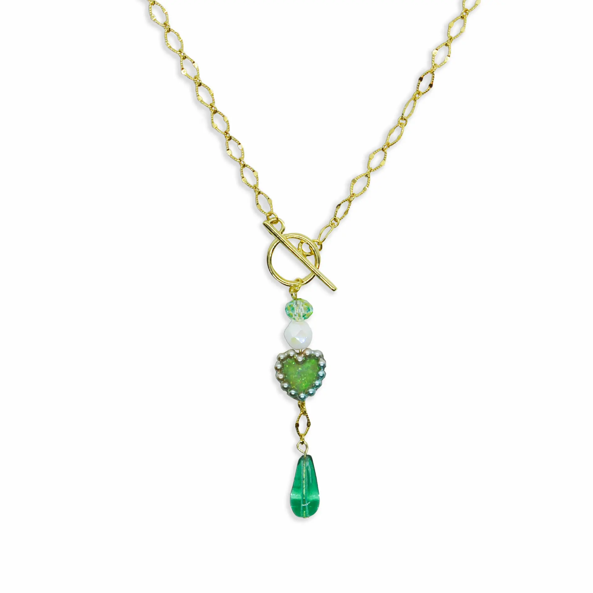 - Dainty Pendant: Handcrafted green resin heart piece adorned with green and white Czech crystal beads.