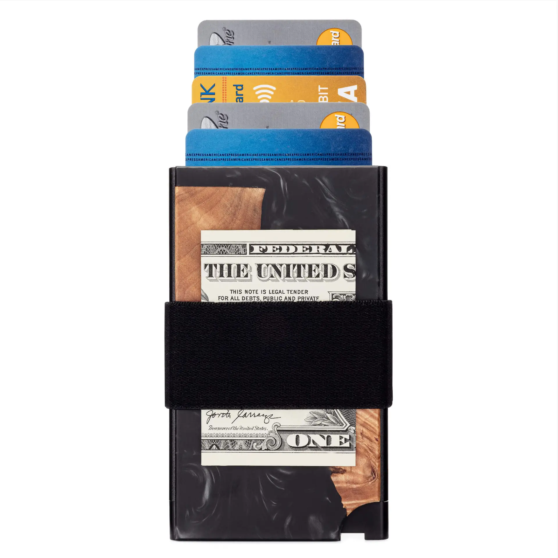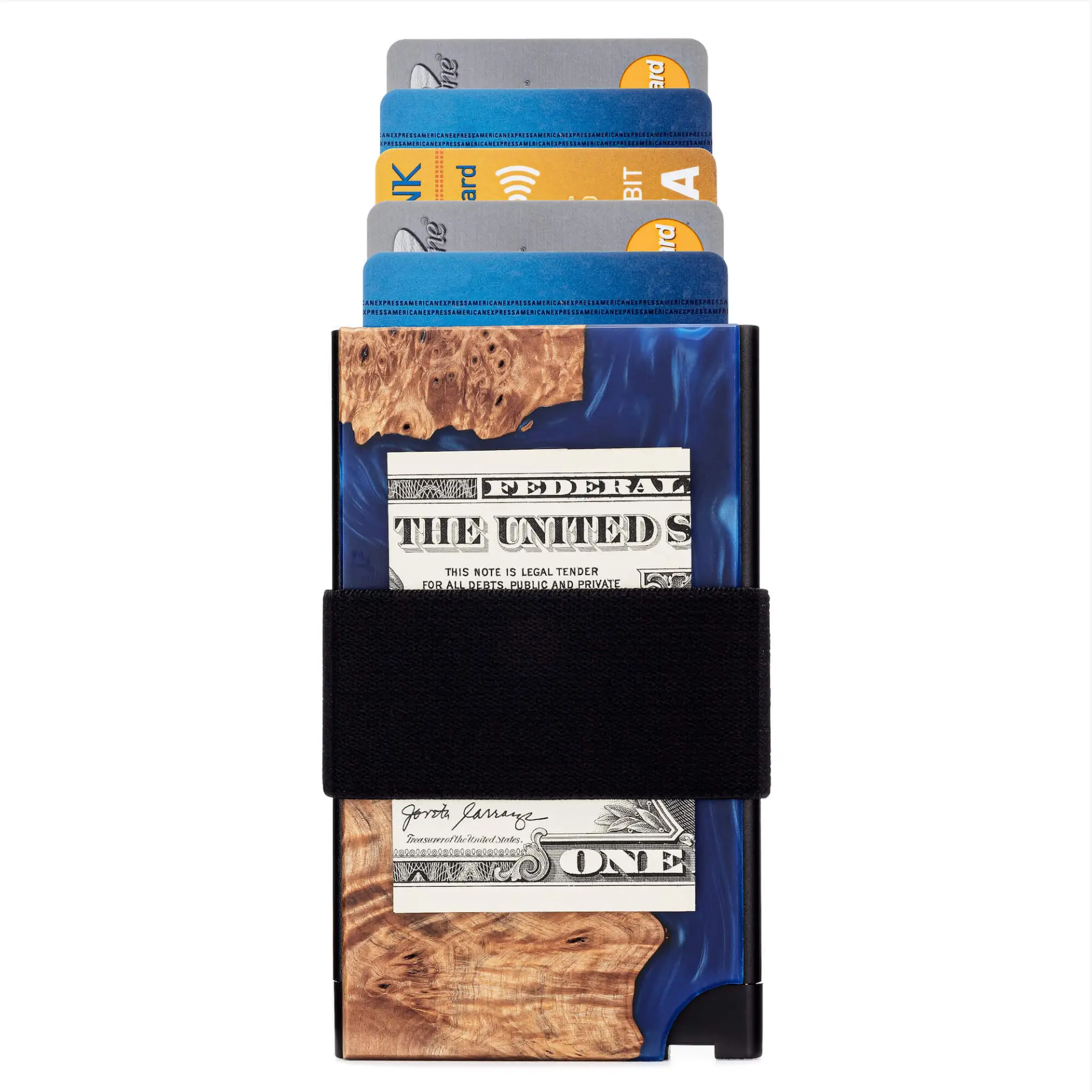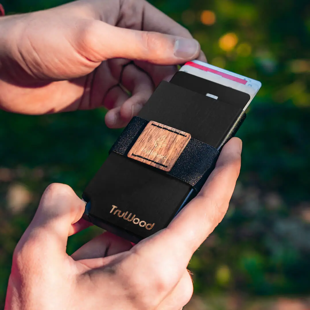 The Maverick is a minimal wallet made from real wood and coloured resin. The main cardholder uses a spring-loaded push button to seamlessly eject up to 6 cards. The Maverick wallet brings the minimalist look back to life while giving you back the space in your pocket. The hard wood & resin exterior provides a slim fit while keeping your ID’s and credit cards safe from bending. Ditch the bulk and enjoy the free range of movement outdoors and on the go with a handcrafted wooden wallet that puts your needs first.