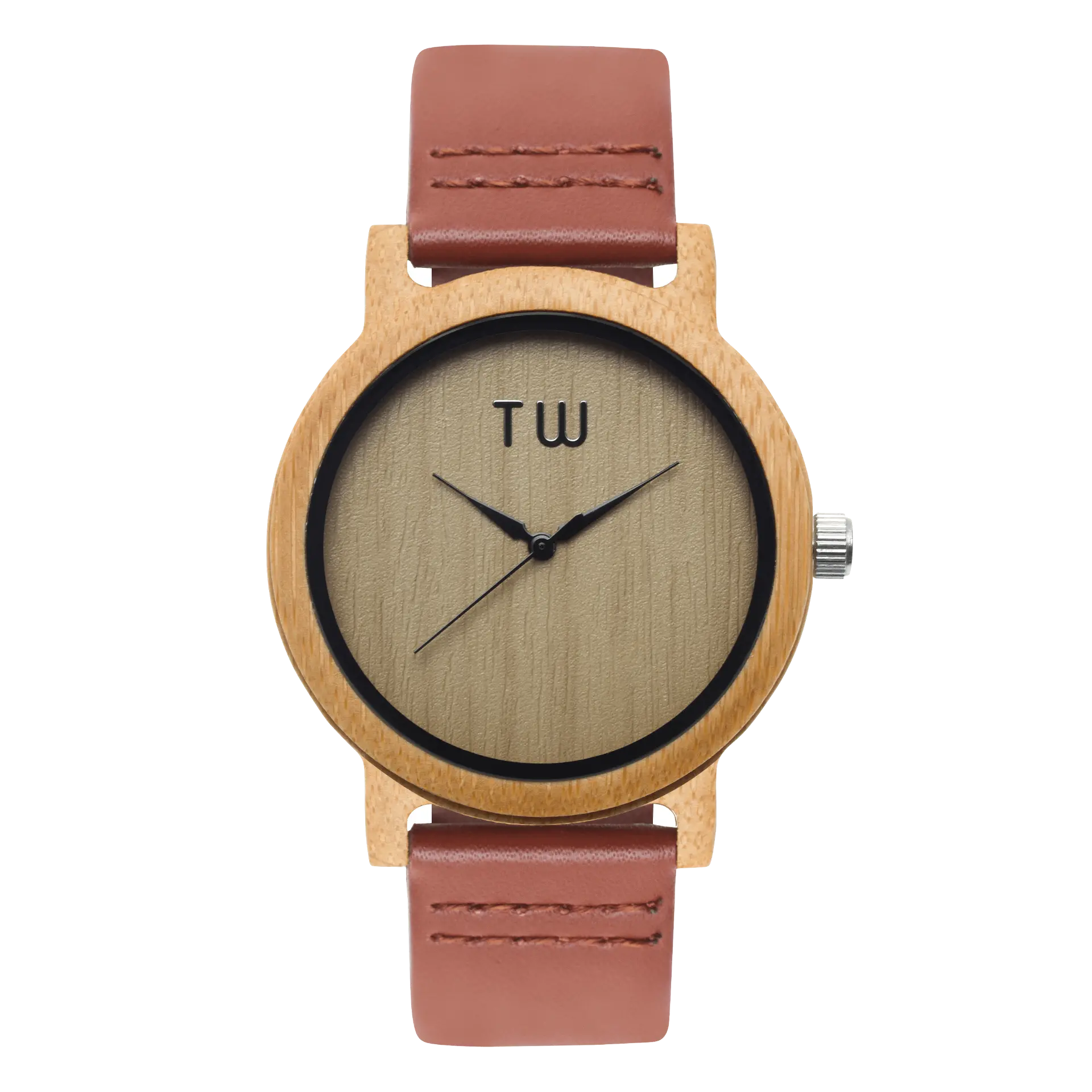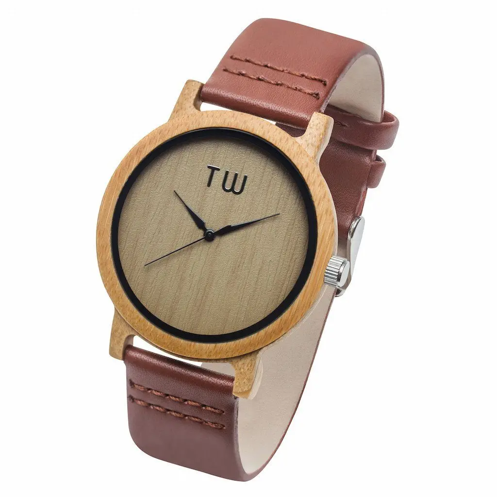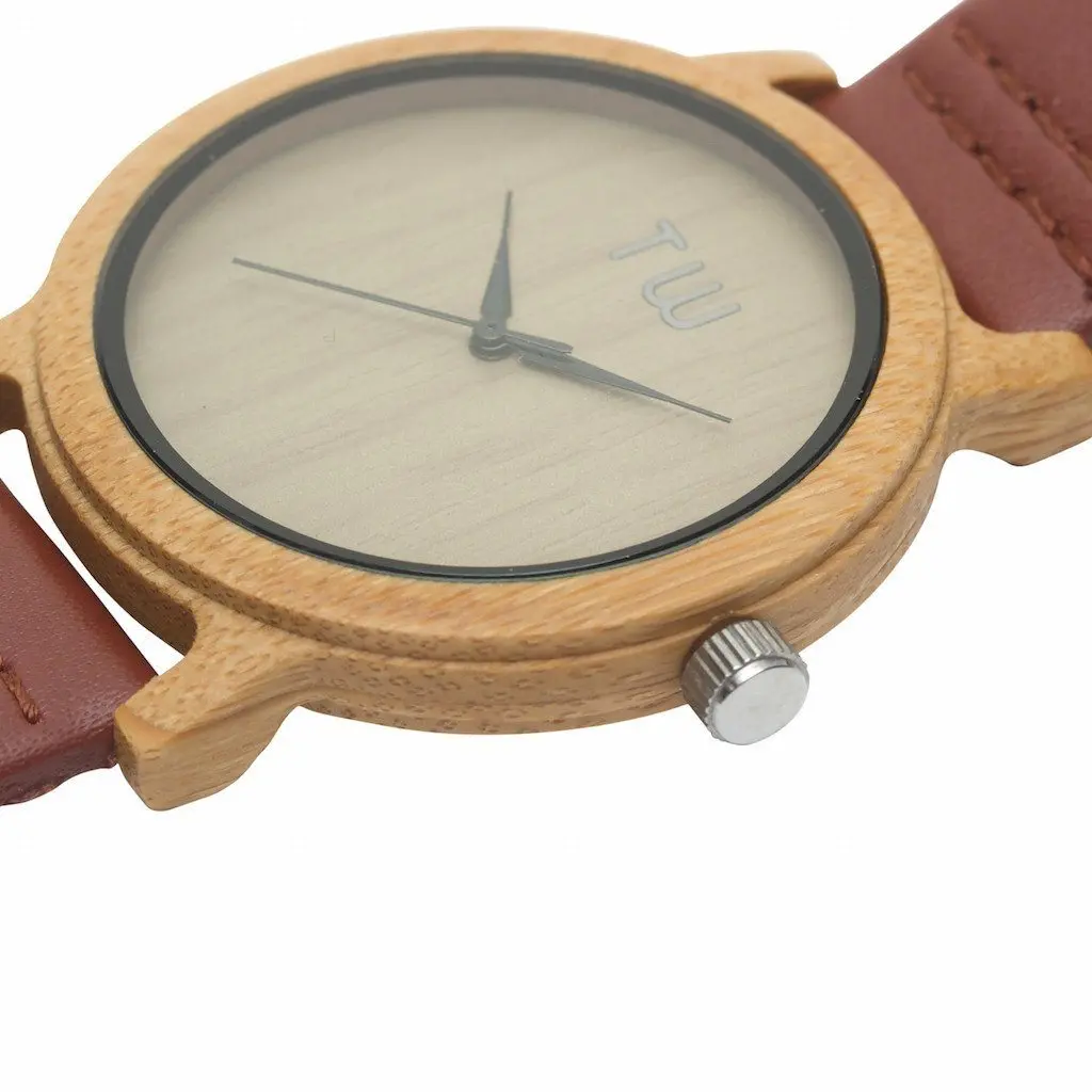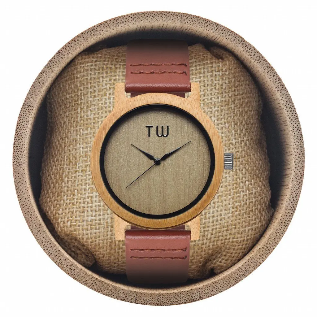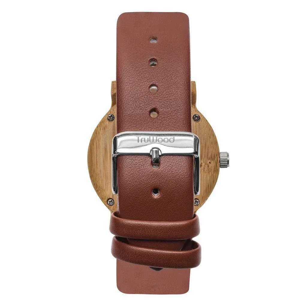 The TruWood Minimal reveals that often less can be more. Define yourself with a watch as unique as you are. Designed to breaktradition, this timepiece’sclean face appeals tomodern aesthetics and natural beauty – one of which is timeless. The casingis made100% bamboothat redefines minimalism in a modern style, contrasted by a silver metal crown to really make the colours pop. A genuine brownleather strap providesan adjustable snug fit, and the jet-black hands deliver uncompromising time.