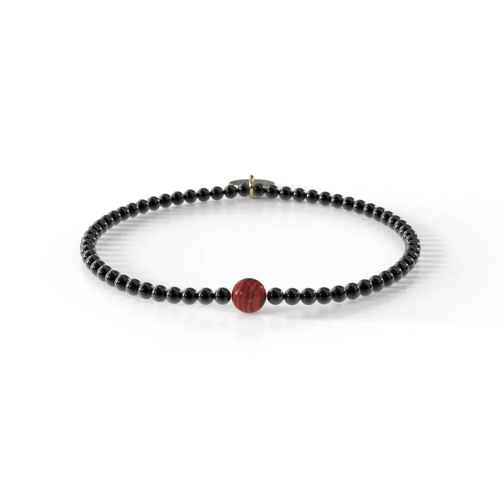 - Women’s bracelets made with beautiful matte black Onyx beads and perfectly matching natural rosewood with an engraved TruWood dangle tag