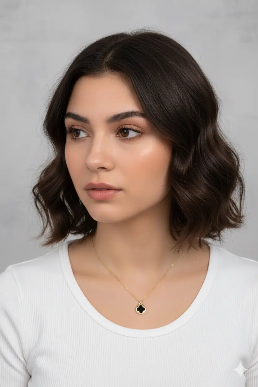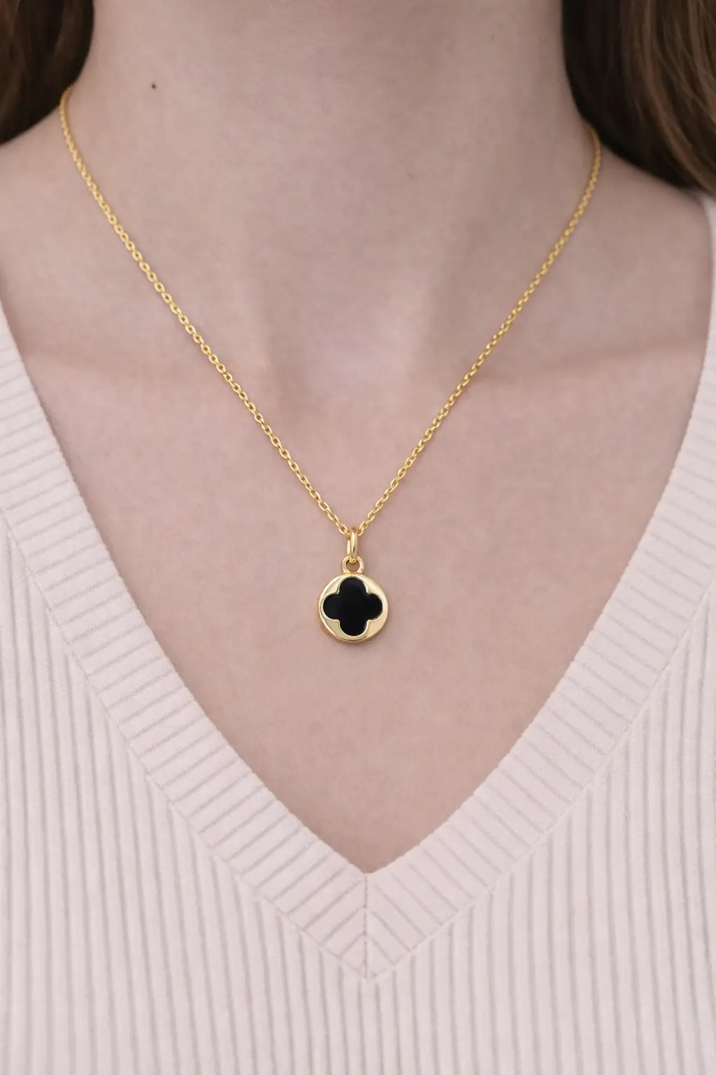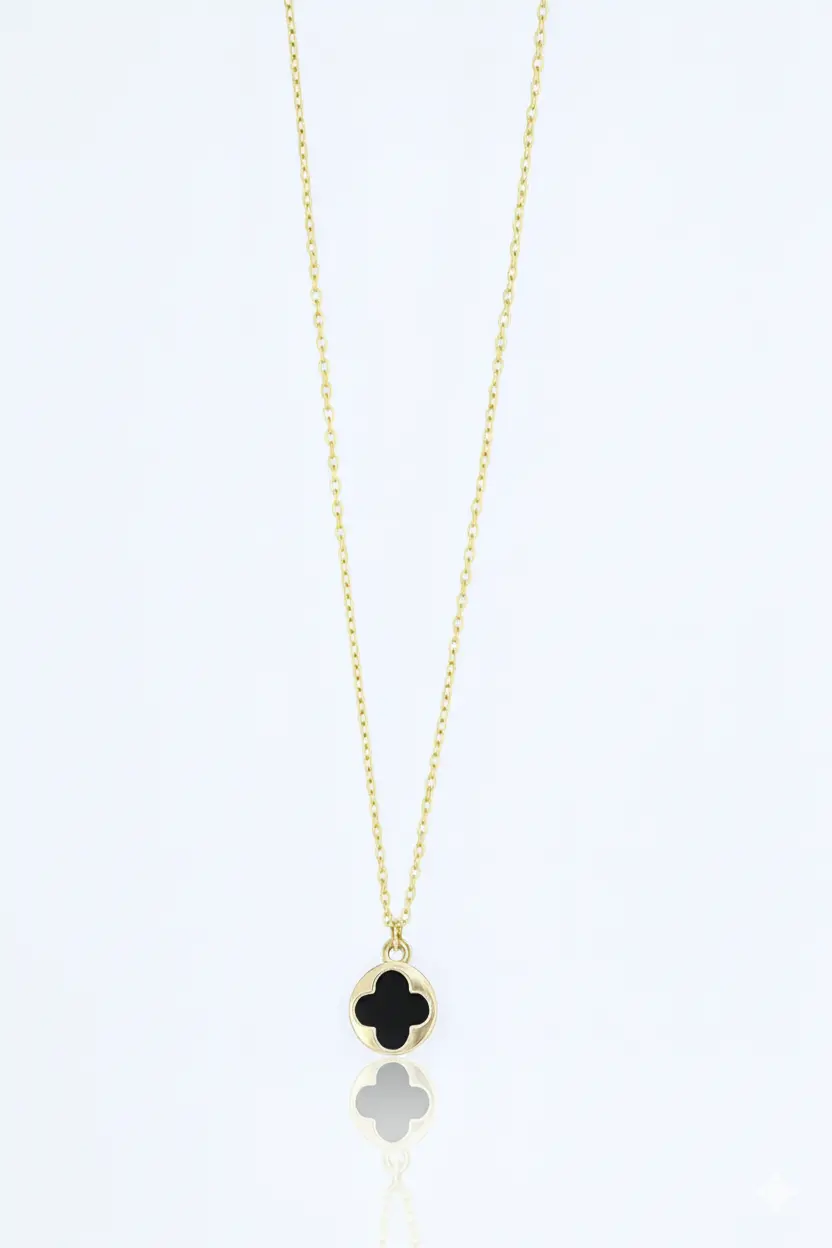 This stainless steel black clover gold necklace offers a modern and elegant accessory suitable for daily wear. The polished gold tone finish provides long lasting shine and resistance to tarnishing while the black clover pendant adds a bold and stylish contrast. Its lightweight design ensures comfortable use throughout the day. A perfect choice for women who appreciate minimal refined and eye catching jewelry pieces.