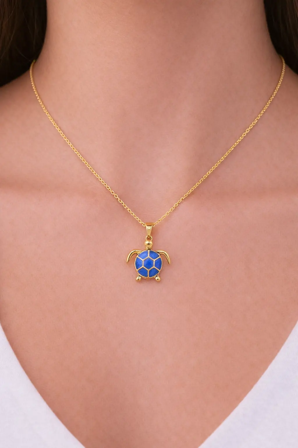 This stainless steel blue sea turtle necklace offers a charming and elegant ocean inspired design suitable for daily wear. The blue detailed turtle pendant adds a soft colorful touch while the durable steel material provides long lasting shine and resistance to tarnishing. Lightweight and comfortable, it complements casual chic and beach themed outfits effortlessly. A perfect choice for women who appreciate minimal stylish and nature inspired jewelry pieces.