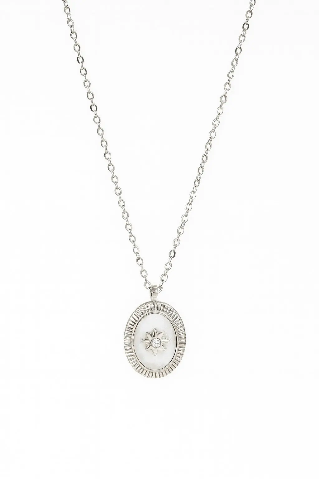 This stainless steel silver stone flower necklace features a bright and elegant design that enhances both casual and formal outfits. The detailed flower pendant is accented with sparkling stones that add a soft feminine shine. Crafted from high quality stainless steel, it is resistant to tarnishing and maintains its polished appearance over time. Lightweight and comfortable to wear, it is an ideal choice for women who appreciate refined minimal and floral inspired jewelry.