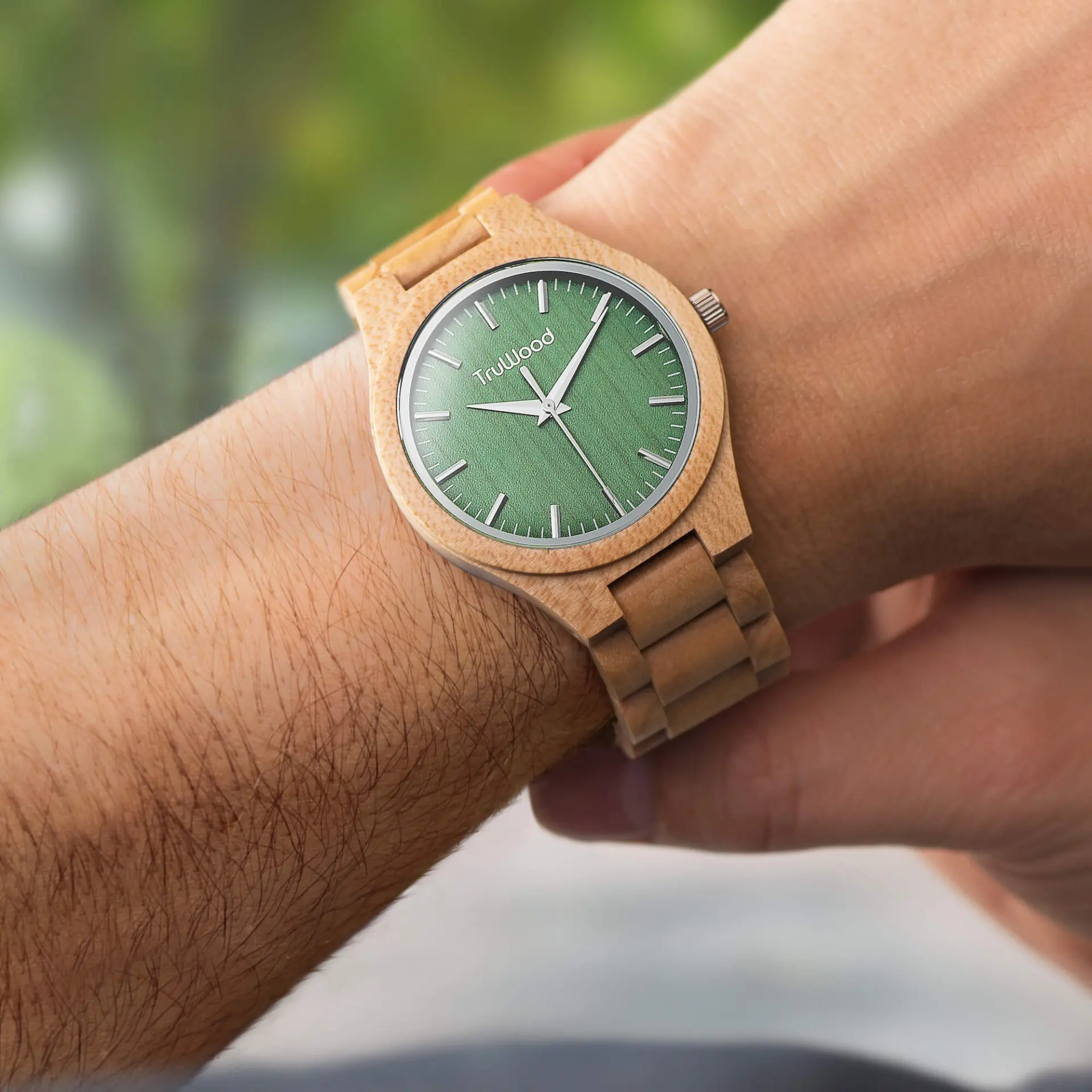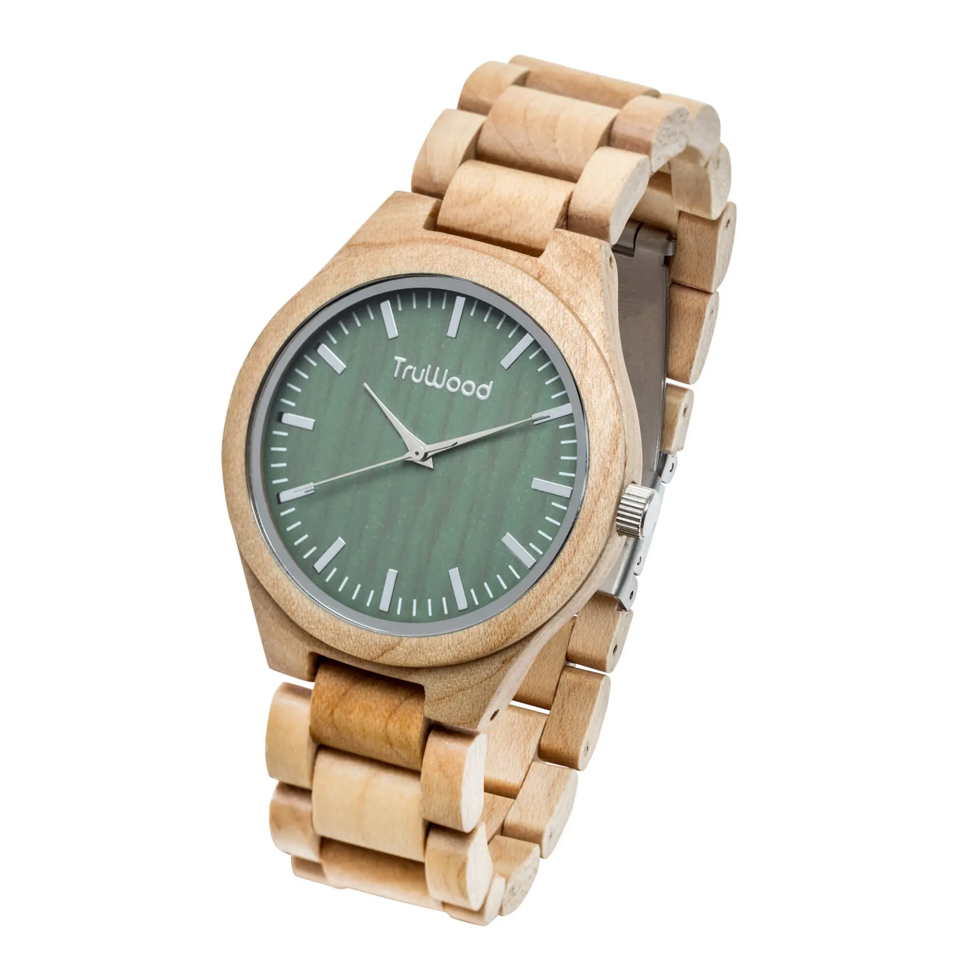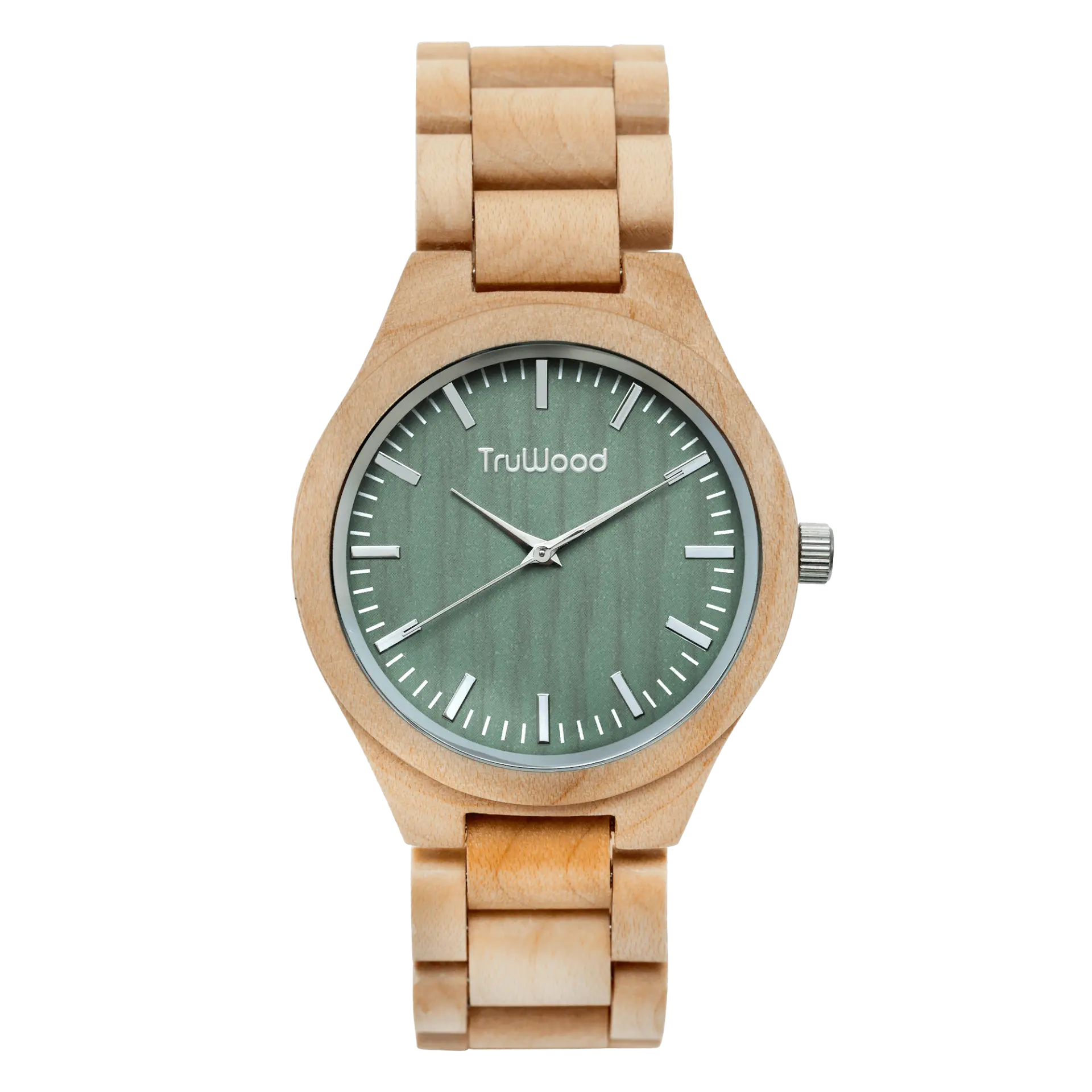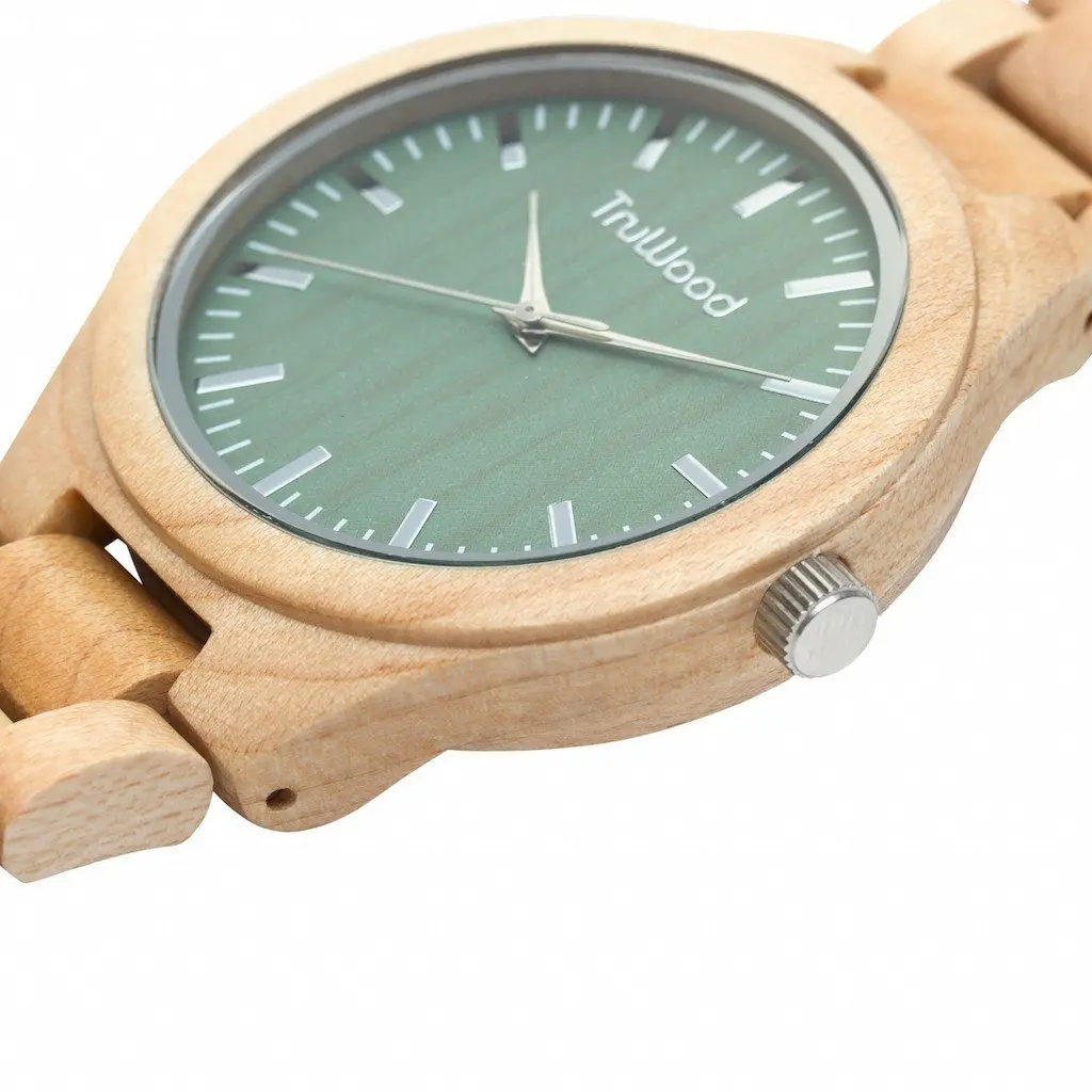 Everyday elegance has never been so accurate a description for any timepiece. The TruWood Stark is handcrafted by expert watchmakers, built on excellence and never cutting corners. The light maple wood case is polished to ensure a uniform grain and specially cured for water resistance in a stunning slim profile. Silver hands stand out on the Stark’s signature green dial housed in a sapphire coated crystal glass, providing the perfect bridge between bold and simplicity. The lightweight wooden links complete the Stark as your most comfortable watch ever.