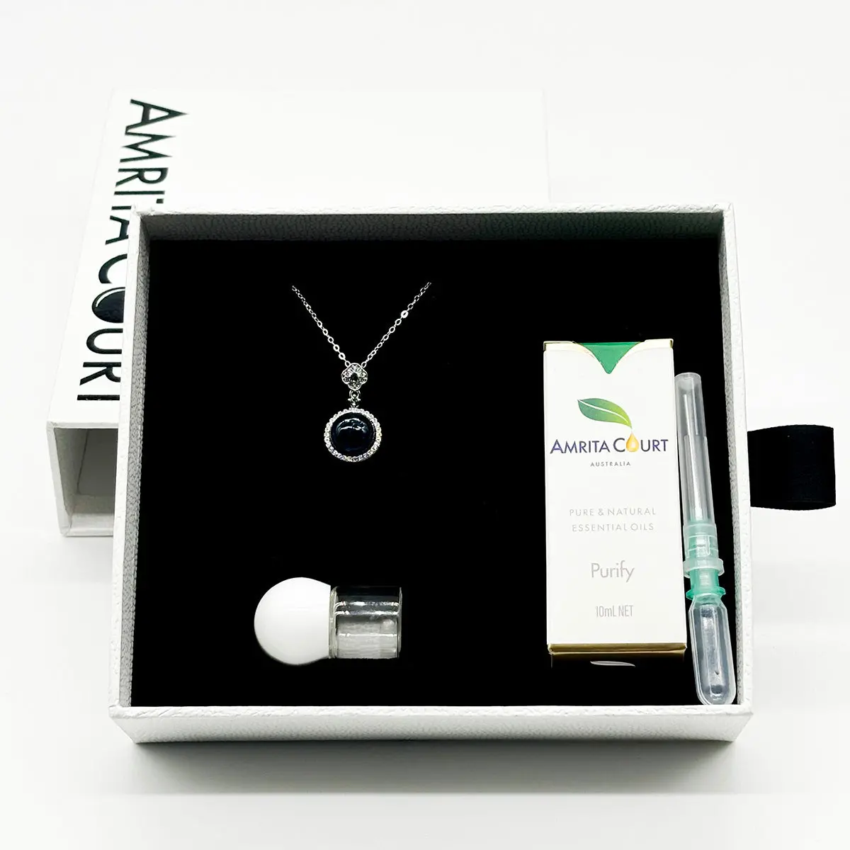 Serving as both a statement piece and a practical accessory, the glass ball doubles as a container for a drop of essential oil, allowing you to diffuse your favorite scent effortlessly on the go. Embodying beauty, versatility, and functionality, this necklace is a timeless addition to any ensemble, ensuring you feel happy, calm, content, and confident on all occasions.