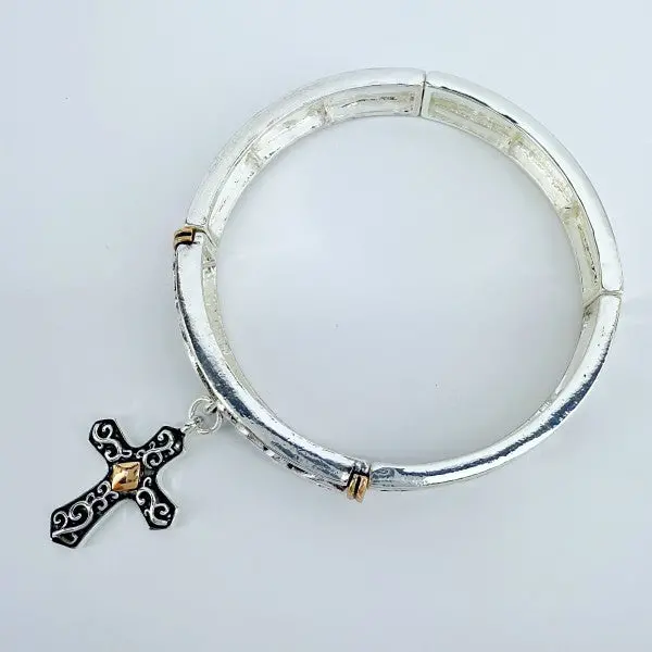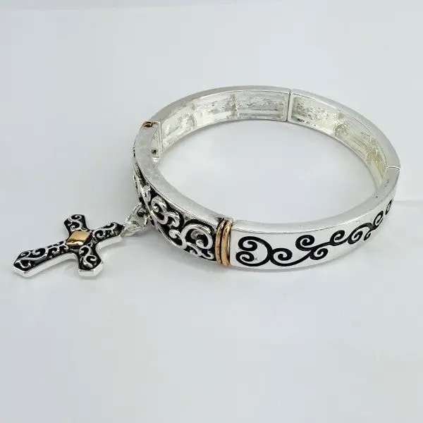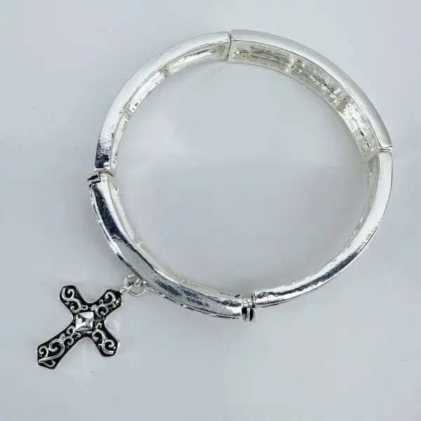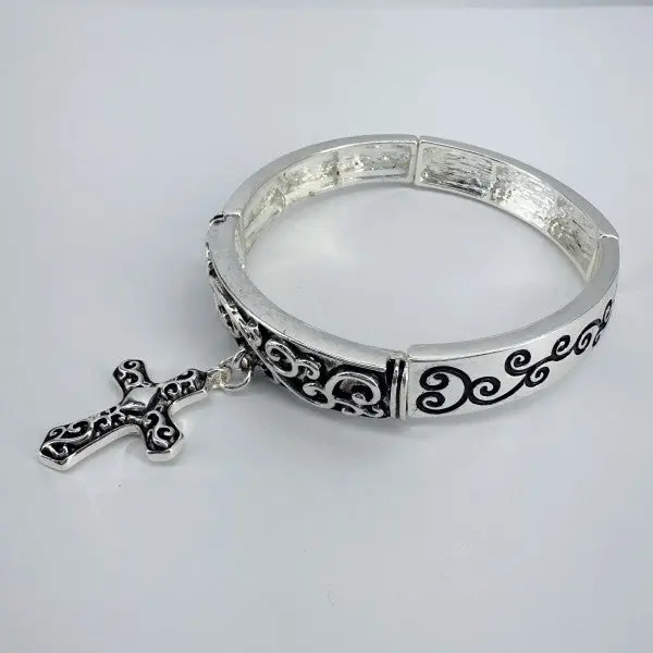 Silver finish Stretchable Filigree Design Vintage with Cross Charm Gold or Silver Finish Decor
