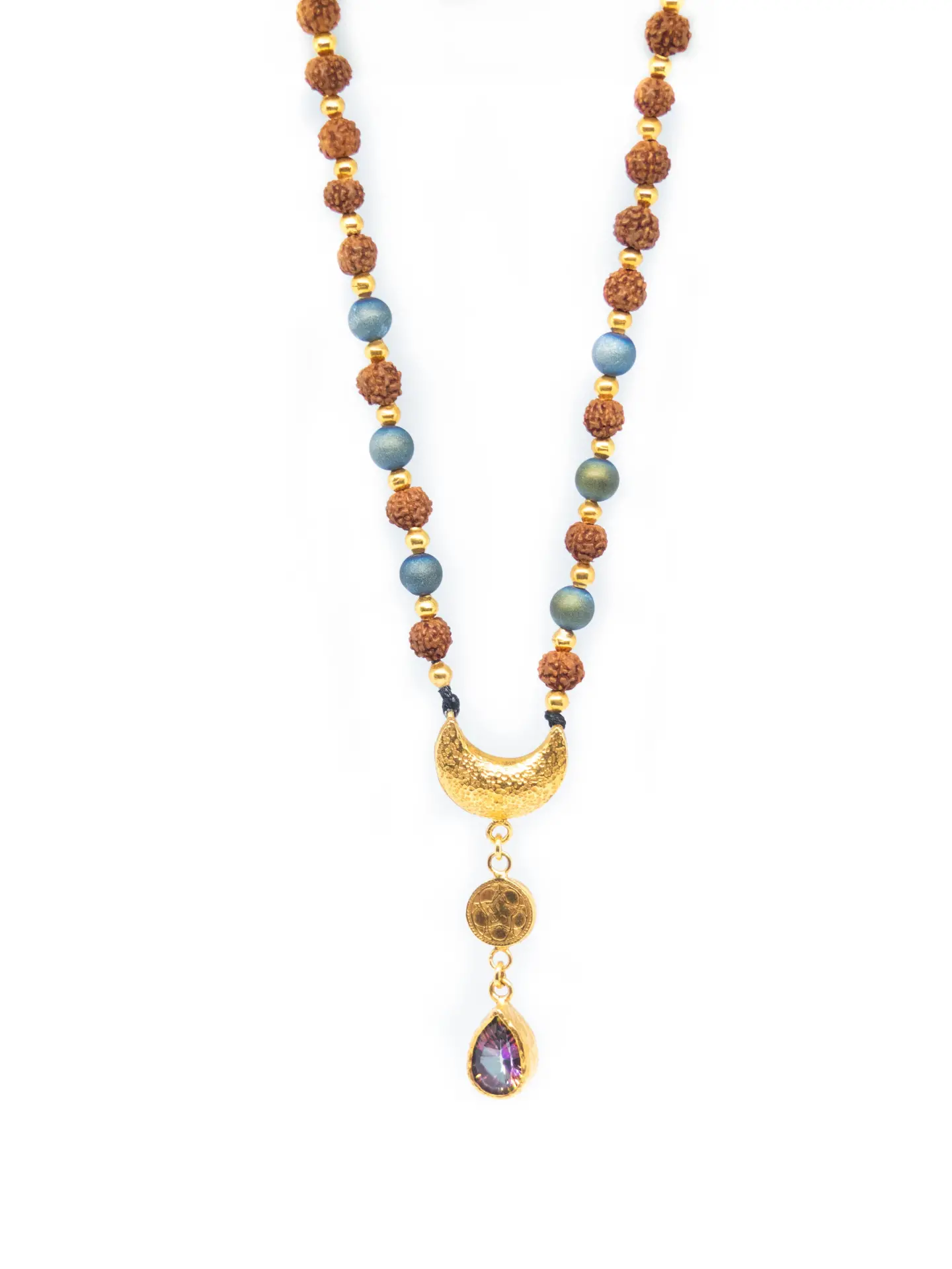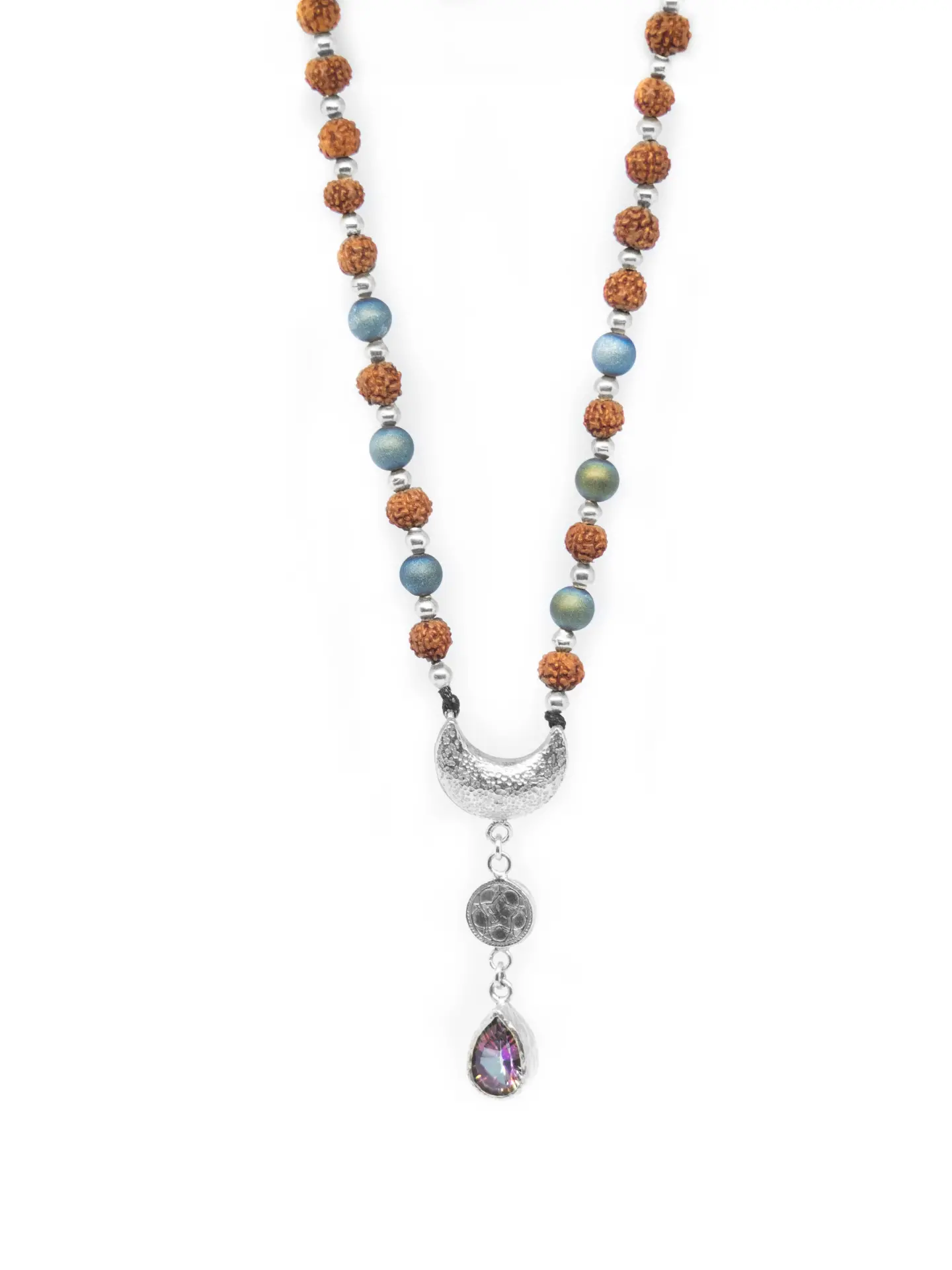 Embodying the essence of pure abundance, the CHANDRA MALA Necklace features a mystic topaz that wards off evil and allows our minds to feel at ease. With its calming energy, this mala brings a sense of calmness to the wearer and helps to balance mood swings by promoting joyfulness, confidence, and vitality.