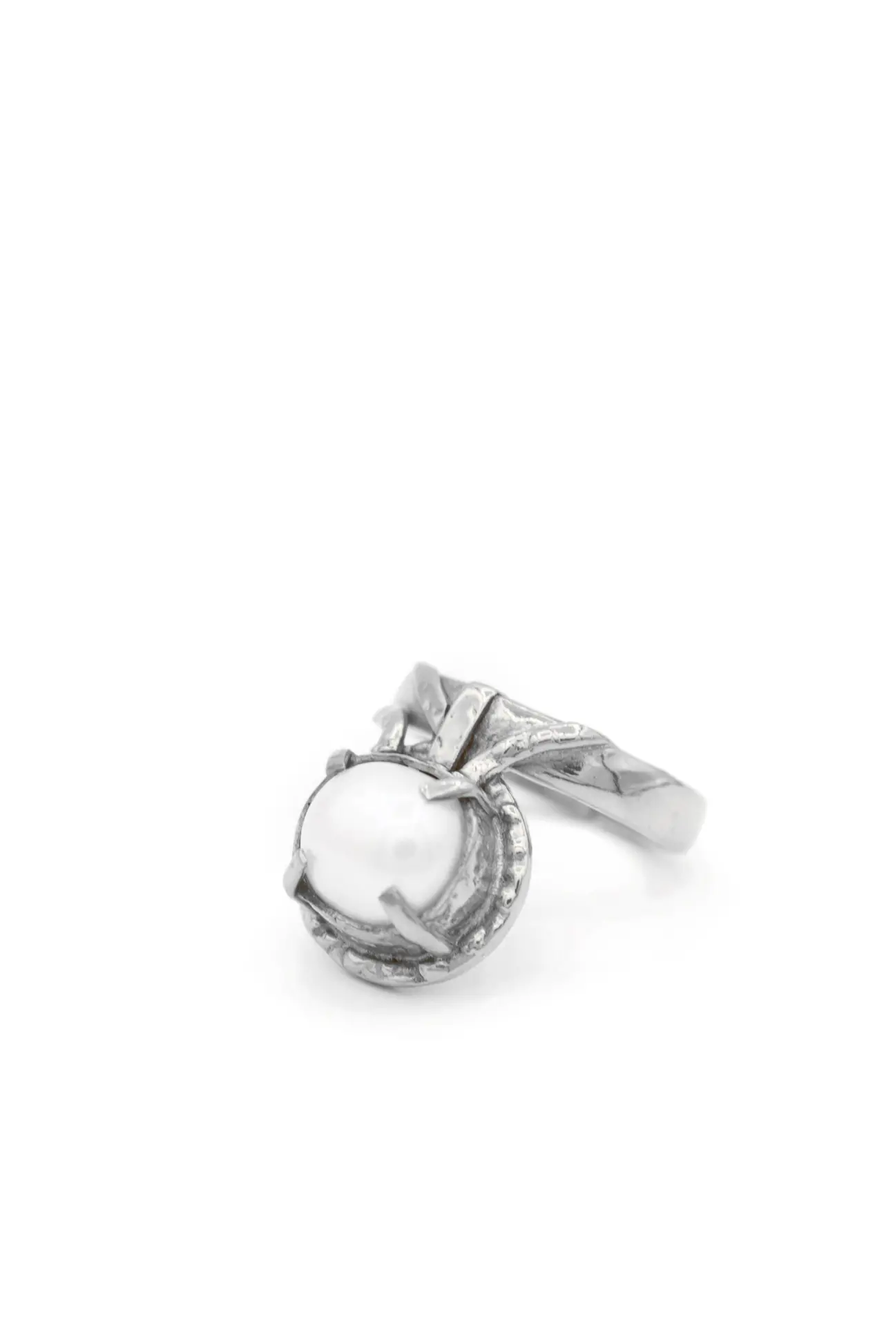 The Cleo ring is an elegant ring featuring a beautiful fresh water pearl hand set with abstract detailing, constructed with love.