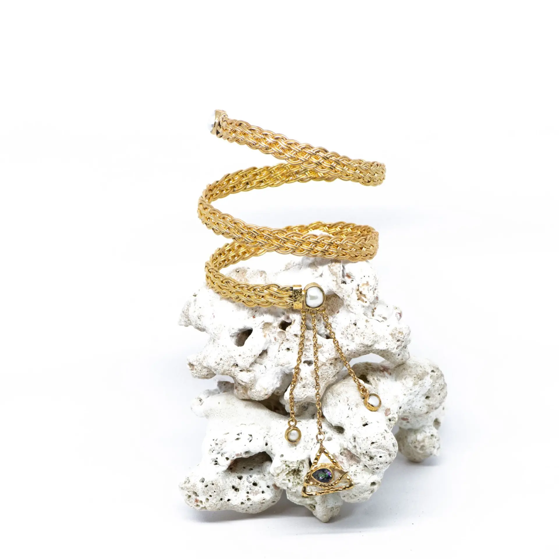 The MYSTIC Braided Arm Band – Handcrafted Pearl and Mystic Topaz